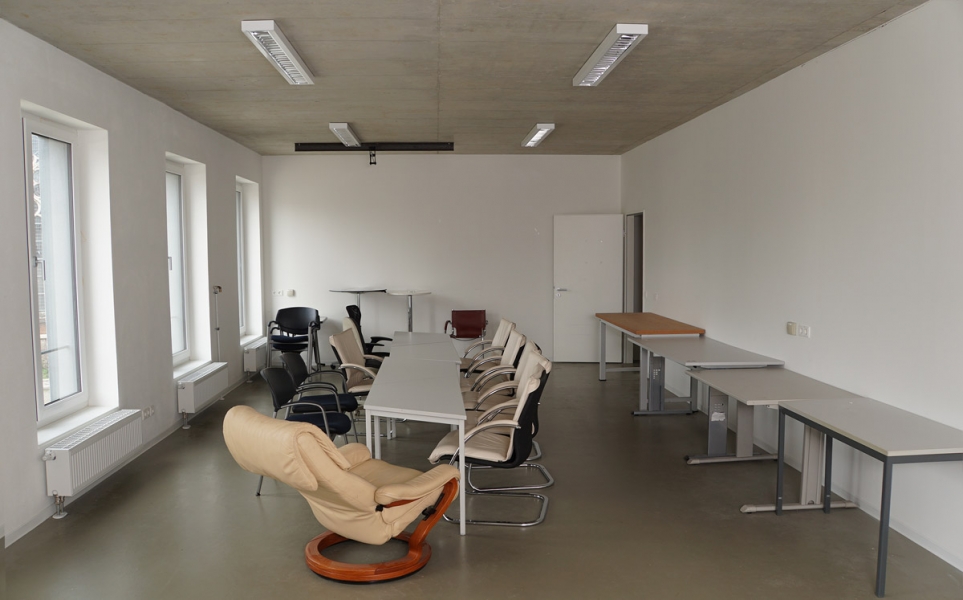 Wir vermieten Räume im Erdgeschoss des Vordergebäudes (211 m²) sowie den 2-geschossigen Neubau (516 m²) sowie den nutzbaren Bereich der Freifläche. Neben dem Werkstattgebäude ist zudem ausreichend Platz für eine 700 m² große Halle bzw. ein Neubaugebäude.