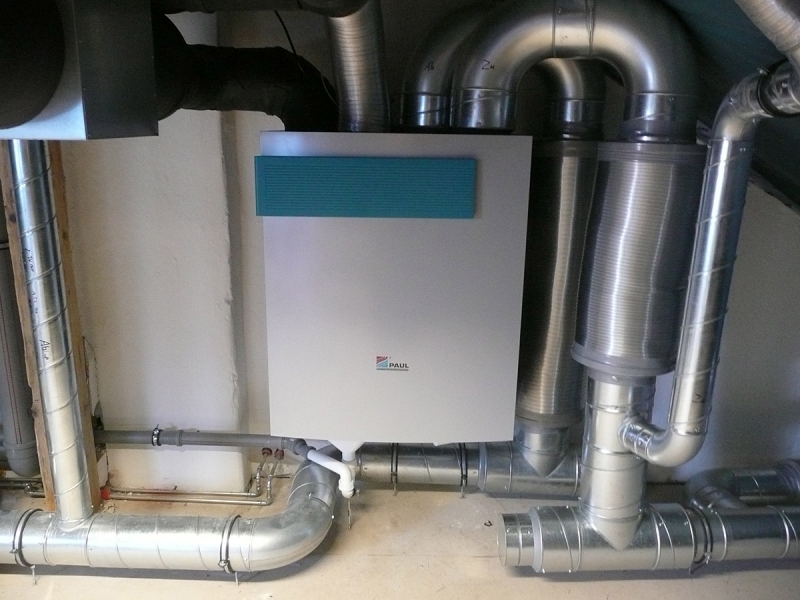 - Mechanische Lüftung des Obergeschosses mit Wärmerückgewinnung (bis 95%)